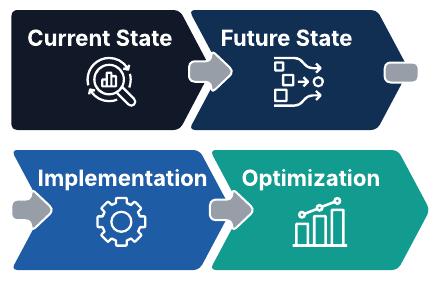 Work with leaders to architect a future state process map, as well as a transition plan to get there.